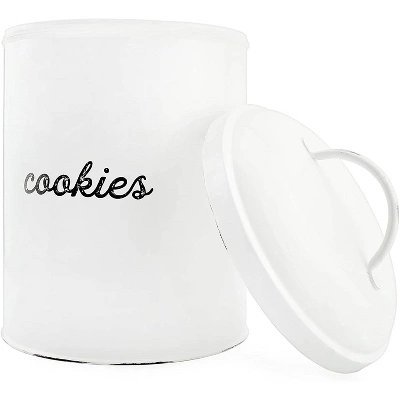 Keep your favorite treats fresh and accessible with our vintage-inspired enamelware cookie jar. Designed in a classic round cylinder shape, this charming jar adds a touch of nostalgia to any kitchen or pantry. Its spacious interior provides ample storage space for everything from animal crackers to freshly baked chocolate chip cookies. The jar comes with a gasket included, ensuring an airtight seal to keep your treats fresh and delicious. Whether you’re looking to add a retro flair to your kitchen or simply need a practical storage solution, this enamelware cookie jar is the perfect choice.