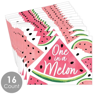 Sweet Watermelon Placemats INCLUDE: 16 paper placemats. Placemats will arrive flat and party ready! EASY CLEAN UP: Sweet Watermelon paper placemats SIZE 15.5 inches wide x 11.5 high. Made of sturdy cardstock paper, these disposable placemats will make it easy to clean up after the party is over. Party placemats are perfect for at-home dining tables or to bring to your favorite restaurant as an easy decoration. PARTY TABLE DECORATIONS: Placemats are a fun and easy party table decoration for a Sweet Watermelon baby shower or birthday party. Use Sweet Watermelon party placemats to style dining tables, buffet tables, banquet halls, and more! Sweet Watermelon party table decoration placemats will make a statement however you choose to use them. PAPER PLACEMATS: Set of 16 Sweet Watermelon placemats are professionally printed on sturdy cardstock paper. Each placemat is individually inspected and carefully packaged to arrive flat. MADE IN THE USA: Sweet Watermelon paper party placemats are designed and manufactured at our Wisconsin facility using materials that are Made in the USA.