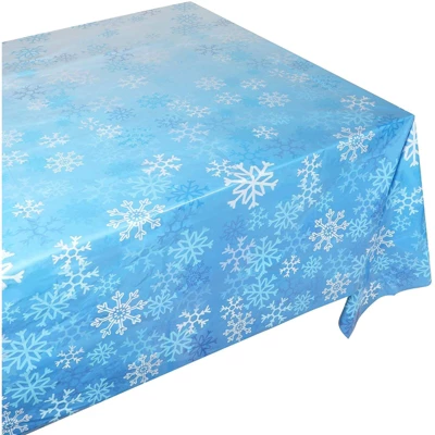 - Christmas Party Supplies: This party pack includes 3 plastic table covers with a blue snowflake graphic; ideal for your holiday party decorations