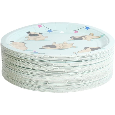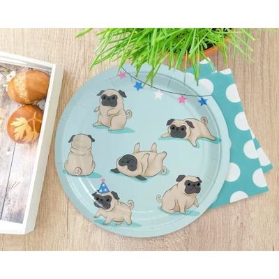 - SERVES 80: Includes enough plates for 80 guests; contains 80 paper plates featuring cute pugs.
