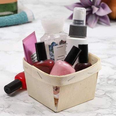 Pick and clean fresh berries with these cute Square Vented Wood Berry Baskets. Each basket comes in a natural color and makes great kitchen accessories or party snack trays for guests. They can also be used to hold small items like nail polish bottles, location, and makeup. Warning. Do not Microwave.