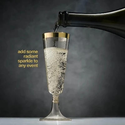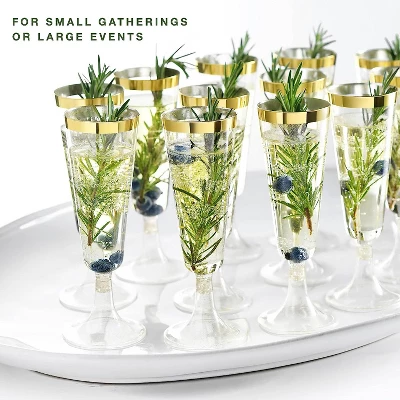 Plastic Champagne Flutes Disposable – Gold Glitter with a Gold Rim – [1 Box of 48] 4.5 Oz Premium Toasting Flutes, Elegant Stylish Mimosa Glasses for Weddings Anniversaries and Catered Events
