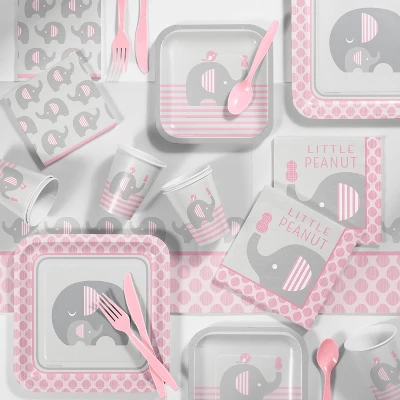Play up your baby shower or birthday party theme with charming Little Peanut Girl Beverage Napkins. This drink napkin features an adorable baby elephant print and pink accents. Sold in packs of 48, these small 2-ply paper napkins are perfect for holding appetizers and cleaning up tiny messes. The Little Peanut Girl Elephant Beverage Napkins makes set up easy, and clean up a breeze!