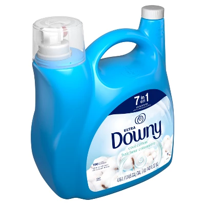 Give your clothes a softer feel and an airy scent with Downy Cool Cotton Fabric Softener. Downy Fabric Softener protects your clothes from stretching, fading, and fuzz while adding the clean Cool Cotton scent. Enjoy 3X more freshness* with less static and fewer wrinkles after every wash. Downy Liquid Fabric Softener is compatible with all top- and front-loading HE machines. It’s easy to use-after adding your favorite laundry detergent, pour Downy Liquid Fabric Softener into the fabric softener dispenser drawer or directly into the agitator and start the washer on your preferred cycle. Feel softer, smell fresher, and look newer** with Downy 7-in-1 Fabric Softener. *Longer-lasting scent vs. Tide Original liquid.**Vs. detergent alone.