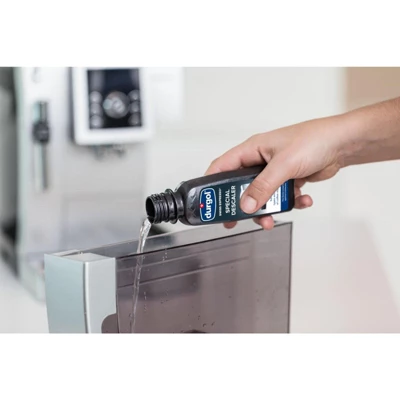 - Pour the easy to use proportioned solution into your machine’s water tank and run the decalcification program