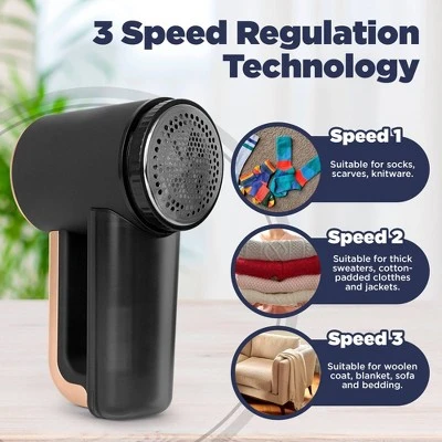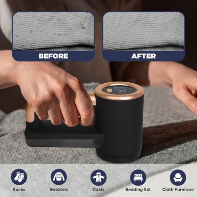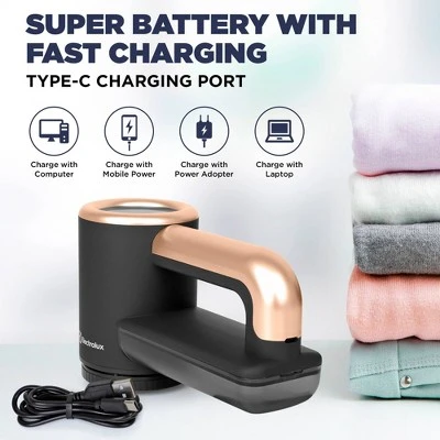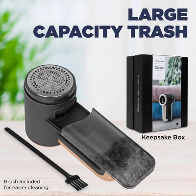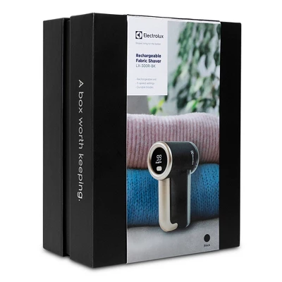 Electrolux Rechargeable Fabric Shaver, Electric Commercial Lint Remover with LED Display & Big Trash Box, 3-Speeds for Removing Fuzz and Pill from Clothes, Furniture, Sweater, Couch and Blanket, in Black. Give your fabric a new lease on life with this fabric shaver. Out with the pilling, in with the smooth. This rechargeable, hand-held fabric shaver turns grungy into gorgeous in just a few minutes of de-fuzzing.