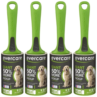 Keep your household fabrics clean and lint-free with the Evercare Pet Extreme Stick Giant Lint Roller. This extra sticky pet tape offers 50% more pickup per sheet for a quick and effective way to pick up pet hair, lint and debris. Perfect for use on clothing, upholstery and more, the efficient lint roller is great for quick touch-ups and larger cleaning projects! The 60 easy tear sheets pull off effortlessly and smoothly so youre not wasting any as you go! The ergonomic handle is designed to fit securely in your hand and most importantly, to feel comfortable during use! Great for use at home, work or in the car, this extra large refillable lint roller measures 10.5″” x 2.5″” x 2.5″” for convenient storage in drawers, cabinets, and cleaning caddies when not in use. At Evercare, we believe that products do more than perform a function, they must look great. Detailed in the design, we combine right materials, better function with sleek styling quality materials. The results are solutions that make your life easier and create a better you. Our goal is creating products that utilize the best technologies to make your life better.
