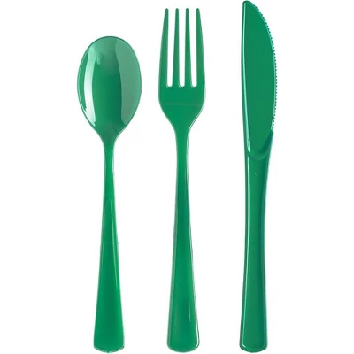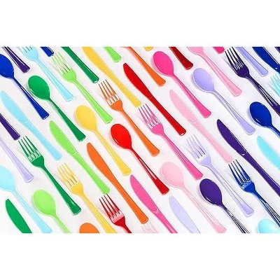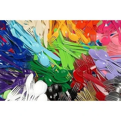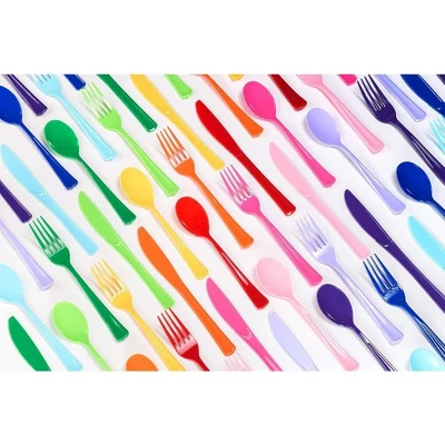 - Convenient 150-pack set: Includes 50 solid color plastic forks, 50 solid color plastic knives, and 50 solid color plastic spoons.
