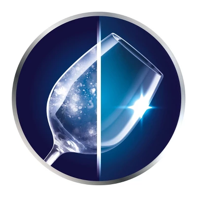 The new and improved Finish Quantum with Activblu technology gives you the next level of clean with superior clean and shine*. Three separate fast-dissolving chambers deliver three power actions: break down and lift toughest messes, grease cutting power, and a finishing boost of shine. The three separate chamber tab delivers the cleaning power of an overnight soak, scrubbing away even 24-hour dried on food! Advanced powder with bleach seeks out and cleans tough stains like tea and coffee. No need to pre-soak or pre-rinse. This formula cleans in short cycles and provides glass protection. Our quick dissolving tab washes away residue for an amazing sparkling shine. *vs. AiO; improved formula vs. previous Finish Quantum