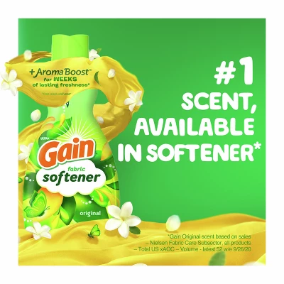 Sniff in a cloud of softness and freshness with Gain Liquid Fabric Softener. With more softness per drop*, your laundry will feel as good as it smells thanks to the one and only Gain Original scent. Experience more of that oh-so-comfy softness with long-lasting freshness, thanks to AromaBoost technology. Since your laundry can smell fresh for weeks and weeks** your nose will thank you over and over again. Gain not only smells good, but it does good, too, because Gain Fabric Softener is made with 100% renewable wind power electricity. Use Gain Liquid Fabric Softener in top- and front-load washers to give laundry that extra boost of freshness and softness you can’t stop sniffing.*Vs. previous non-club bottled formula**From wash until wear