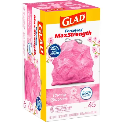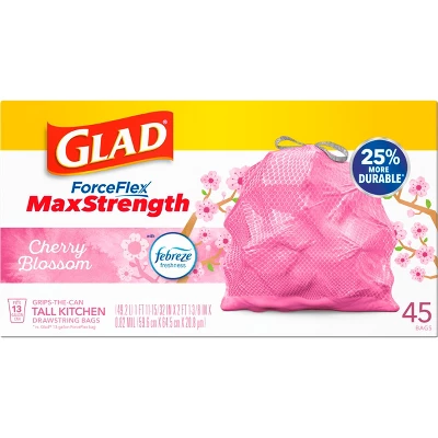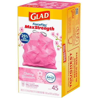 Be the first to review “Glad ForceFlex MaxStrength Tall Kitchen Drawstring Pink Trash Bags – Cherry Blossom – 13 Gallon” Cancel reply
