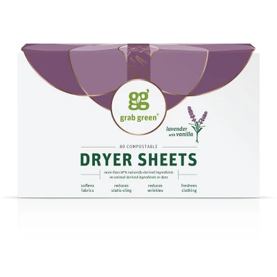 - Contains: 1- 80 Sheet Box of Grab Green Natural, Compostable Lavender with Vanilla Dryer Sheets