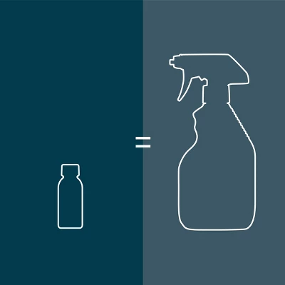 - 1) Add water to Reusable Glass Bottle 2) Empty 1 concentrate into bottle. Shake gently 3) Clean sustainably!