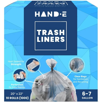 - With Hand-E Trash Can Liners, you can say goodbye to flimsy, unreliable garbage bags and enjoy the convenience of a product that meets and exceeds your expectations. The sturdy construction, versatility, and reliable sealing mechanism make these liners a must-have for any household, office, or commercial environment.