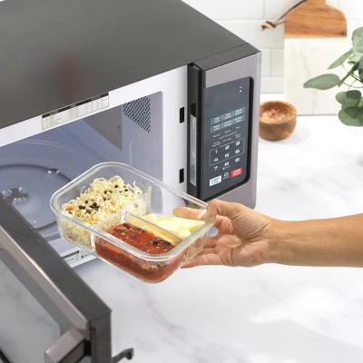 - TEMPERATURE SAFE: Thick borosilicate glass food storage containers (1.85lb each). Durable as dry airtight storage containers for pantry items, fresh fridge storage containers and freezer safe food storage containers (lids on). Microwavable bento box and oven safe meal prep containers (lids off). Each food divider container can go from refrigerator to microwave (lids off) without cracking to temp change.