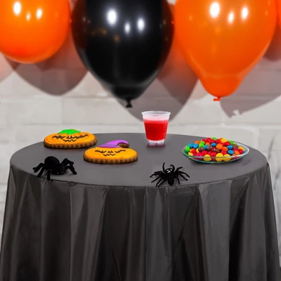 - GREAT FOR BLACK THEMED PARTIES: Suitable for all your black themed birthdays, baby shower, bachelorette parties, school events, trade shows and exhibit displays, and family gatherings. Indoor or outdoor, these round tablecloths are just what you need to complete your party decor.