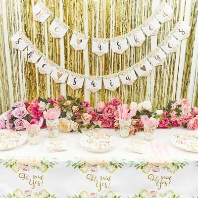 - EASY PARTY PREP & DECOR: Don’t make decorating harder than it should be, complete your party decor with our floral design themed table covers and celebrate in style. The vibrant white and gold accents will definitely add an elegant touch to dining tables