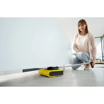 Electric brooms are quicker to use than a vacuum cleaner. We all know the problem: as soon as you’ve finished vacuuming, there are crumbs already on the floor again. The cordless electric broom from Karcher is ideal for intermediate cleaning. Thanks to its compact and modern design, the KB 5 can be stored wherever it is needed and is always ready to use. Just pull the handle back to start the machine. The easy to use design also means the cordless broom can stand on its own and or can be folded flat to slide into a smaller space. No need to look for a dust pan when your sweeping up crumbs from the kitchen floor. Debris is collected in the easy empty side container. The KB 5 is ultra light weight weighing 2.65 lbs.