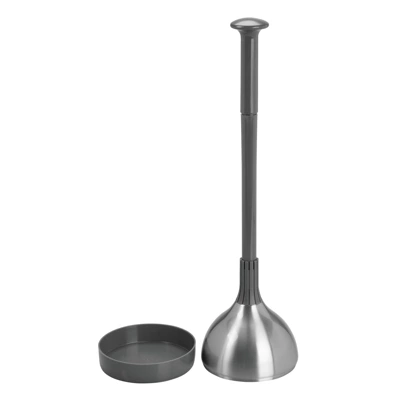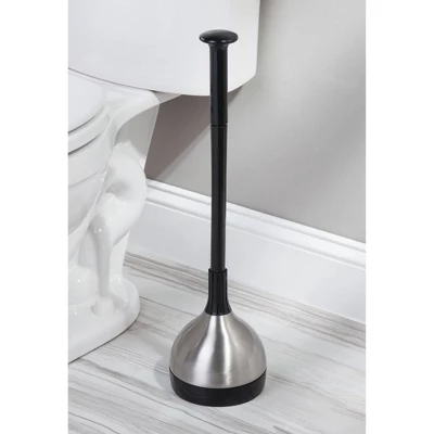 Keep your bathroom neat and clean with the Toilet Plunger and Holder by mDesign. The heavy duty plunger creates a tight seal to rid toilets, bathtub drains, and kitchen sinks of clogs. The plunger fits neatly into the holder, making storage simple while keeping bathroom floors clean and dry. The compact design fits into even the smallest of bathroom spaces, making it easy to stash out of sight!