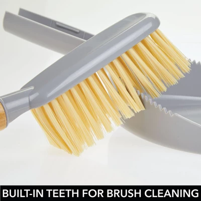 - Convenient loop for hanging, Dust pan has built-in teeth for easy brush cleaning