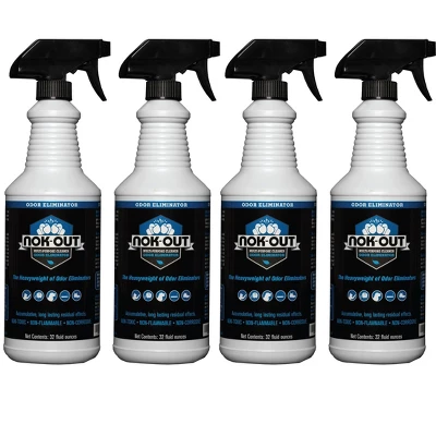 Nok Out Odor Eliminator was created as a solution to conquer intense pet odors such as cat urine and skunk spray. Our innovative deodorizer and multipurpose cleaning solution targets odors at the source to knock them out permanently. Nonabrasive and noncorrosive, Nok Out is gentle enough to use on nearly any washable surface. Use this versatile deodorizing spray in a wide range of applications, from targeting cat pee on litter boxes, to obnoxious tobacco and smoke smells, to funky locker room and sports gear odors.