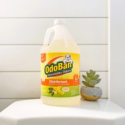 OdoBan multipurpose concentrate does the job of many products in one. Each gallon of concentrate makes up to 32 gallons of cleaning solution. It’s an effective cleaner and sanitizer that leaves no residue, and works effortlessly to disinfect hard, nonporous household surfaces. Kills the Human Coronavirus in 60 seconds when used according to disinfection directions on hard, nonporous surfaces; meets the criteria for inclusion on EPA List N (EPA Reg. No 66243-2). It’s also an effective eliminator of harsh aromas and stenches caused by pets on carpet, upholstery, and more. It can even stand up to the smell of smoke and can be used in sinks, tubs, and for mopping floors and washing walls. Not only is it an exceptional cleaner, but it’s a great air freshener and will remove harsh smells from any room. It’s also a great way to refresh laundry and fabrics. OdoBan products can be used in both households and business facilities of all types including schools and day cares, hospitals, nursing homes, in ambulances, buses, and trains, in airplanes and taxis, in restaurants and cafeterias; pretty much any place where people commune. When used as directed, OdoBan is safe for use on washable surfaces, including sealed natural stone, stainless steel, ceramic, tile, Formica, fiberglass, rubber, vinyl, terrazzo, and plastic. Safe for use on sealed natural stone countertops and surfaces, like granite, quartz, marble, ceramic, and soapstone.