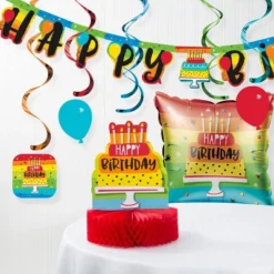 Creative Converting 24ct Rainbow Cake Square Dessert Plates Pink