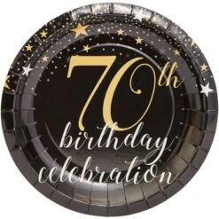 Blue Panda 80-Count 70Th Birthday Celebration Disposable Paper Plates 7 Inches Black Party Supplies