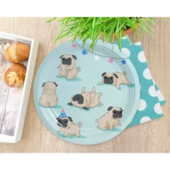 Blue Panda 80-Pack Blue Dog Pattern Disposable Paper Plates Kids Party Supplies, 9 Inches