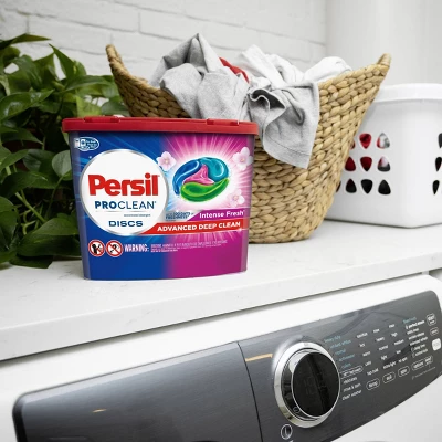 Persil ProClean Intense Fresh discs are a single use laundry detergent disc in the convenient form of a pre-measured pac. With unique four chamber technology, the four chambers work together to provide an advanced deep clean, stain removal, fiber care, and fresh release technology for up to 100 days of freshness*. Persil discs are easy to use, just place the laundry pacs into your empty washing machine drum before adding laundry. Persil discs go deep into fabric, attacking tough-to-clean stains to deliver an exceptional deep clean and freshness for your laundry. Persil discs clean effectively in all water temperatures, including cold water, and work in all washer types, including high efficiency (HE) washing machines.