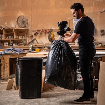 Whether you’re clearing up after a demolition or just disposing of serious yard waste, these black contractor bags by Plasticplace are a smart choice. They have been made in the USA with superior low-density resins to a serious thickness of 3 mil. That means they’ll deal with pretty much anything you can throw at them or throw away in them. Bricks, nails, broken glass: all child’s play to these heavy duty black trash bags. The extra-large 40-45 gallon capacity means they’re the ideal size for outdoor cans, but the flat seal helps them to stand upright even on their own.