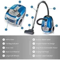 Prolux TerraVac 5 Speed Quiet Canister Vacuum Cleaner With Sealed HEPA Filter