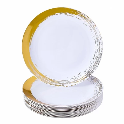 - BRUSH STROKE DESIGN: This unique plate is designed with gold paint strokes. A true showstopper!