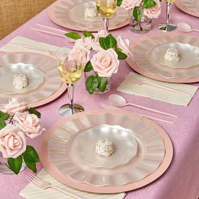 PREMIUM QUALITY: Non-toxic, Made from high grade heavyweight cardstock materials, Safe to use for hot, wet, or cold foods.CLASSIC DESIGN: The classic solid color makes this charger set the perfect option for wedding shower decorations, baby showers, events and more.STURDY AND DURABLE: These disposable charger plates are sturdy enough to handle heavy foods. No one will know that these are disposable, made of premium plastic materials, the secret is yours.CONVENIENCE: These charger plates are the hassle-free alternative to real dishes. Simply dispose of after the party and relax. You can also hand-wash and reuse them if you wish.DESIGNED FOR ALL OCCASIONS: Our charger sets are ideal for all occasions. These chargers are a perfect option for upgrading banquets, parties, baby showers, upscale catering, home dinners, etc.