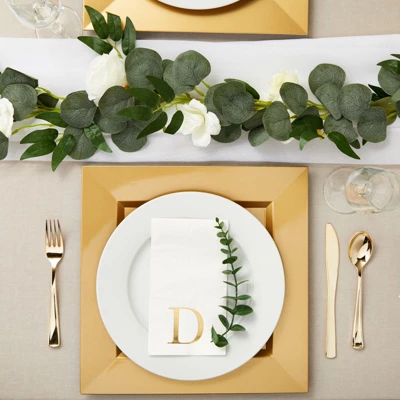 - Monogram Napkins: The personalized paper napkins feature a gold foil monogram initial D that will instantly elevate the party decor at an upcoming wedding reception, graduation, or birthday party