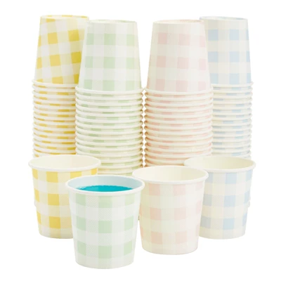 - What’s Included: Includes 100 mini paper cups with gingham designs, 4 colors