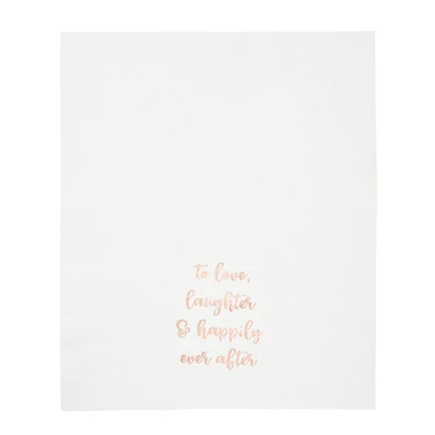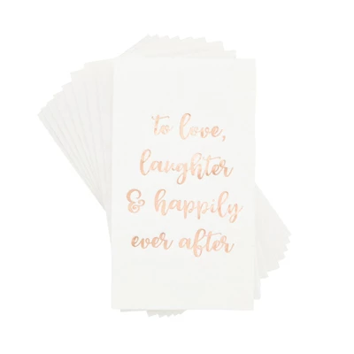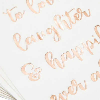 - Wedding Party Supplies: Add this set of wedding napkins to your wedding decor, the gold foil words reads “To Love, Laughter, and Happily Ever After” will create a cohesive theme throughout your event