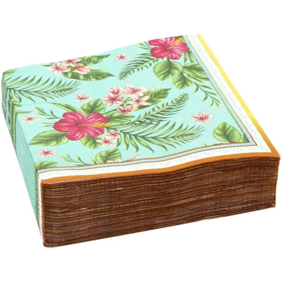 Elevate your dining and dessert tables with this napkin set that includes 150 blue tropical luncheon napkins. The decorative floral designs will perfectly complement your decor for an upcoming Hawaiian luau birthday party, baby. The sturdy wooden pulp construction ensures accidental spills and messes are cleaned with ease. Spend more time celebrating and less time cleaning up, disposal is a hassle-free task with these party napkins!