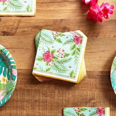 - Plumeria Party Napkins: Add these napkins to your luau party supplies, the tropical flowers will help create a cohesive theme throughout your event