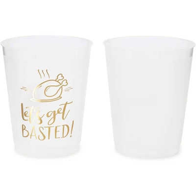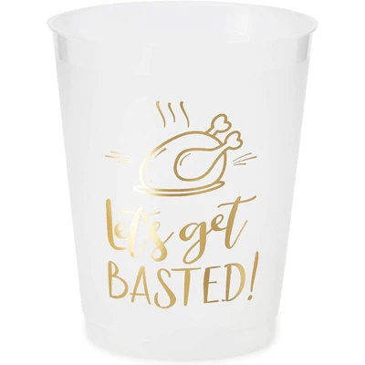 - 16 OZ PLASTIC CUPS: These clear cups feature “Let’s Get Basted” gold foil lettering that will elevate any dining or dessert table setting