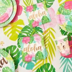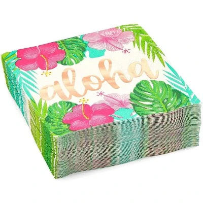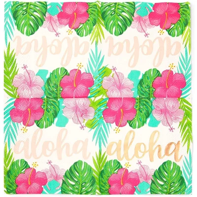 - Hawaiian Party Supplies: Add this set of 50 napkins to your Hawaiian party supplies, the pink tropical flowers will help create a cohesive theme throughout your event