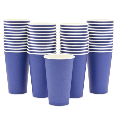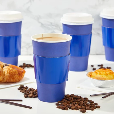 Keep your hot coffee or beverage warm when on the of thanks to this set of 48 disposable coffee cups with lids and sleeves. These navy blue insulated paper coffee cups with lids are perfect for holding hot beverages such as coffee, tea, and hot cocoa. Use them for festive occasions such as bridal showers, baby showers, birthday parties, weddings, banquets, engagement parties, travel, and everyday use. Each cup holds 16 ounces and comes with corresponding lids and sleeves.