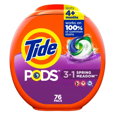 The Spring Meadow scent is infused with with fresh floral notes to help keep your clothes smelling great. More than just a liquid in a pouch, Tide PODS delivers a surprisingly powerful clean in 1 step.